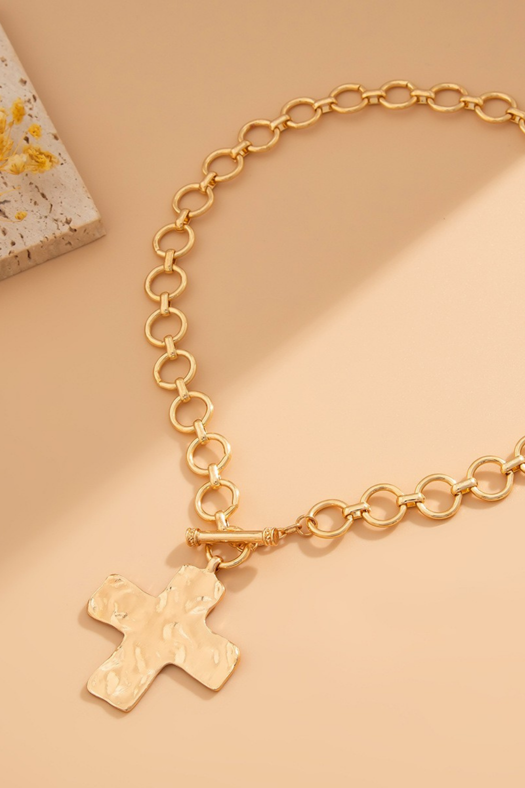 Our Hammered Cross Necklace is a bold statement piece with a touch of artisanal charm. Featuring a striking hammered cross pendant, this necklace showcases a textured, handcrafted look that adds depth and uniqueness. Toggle closure.