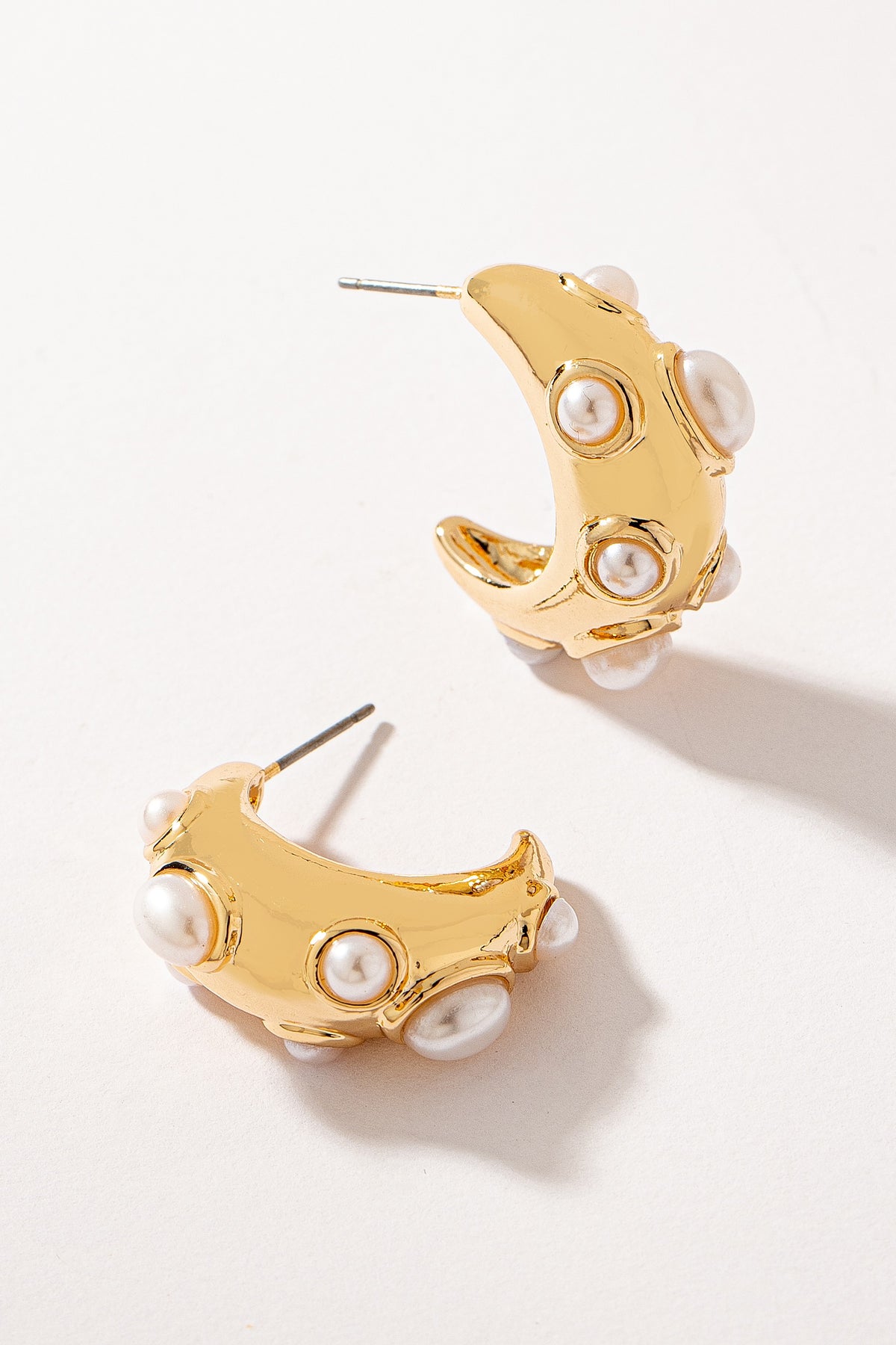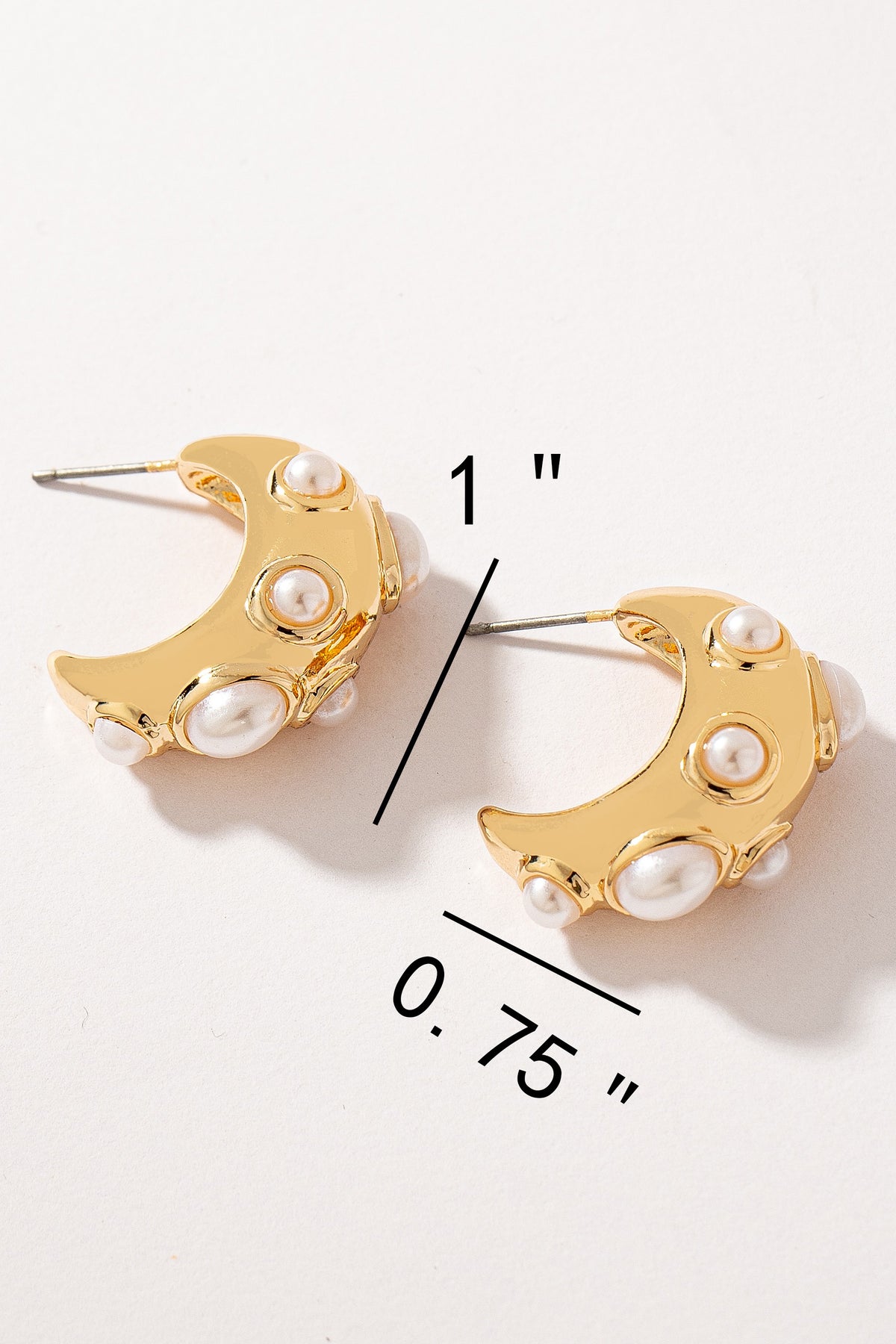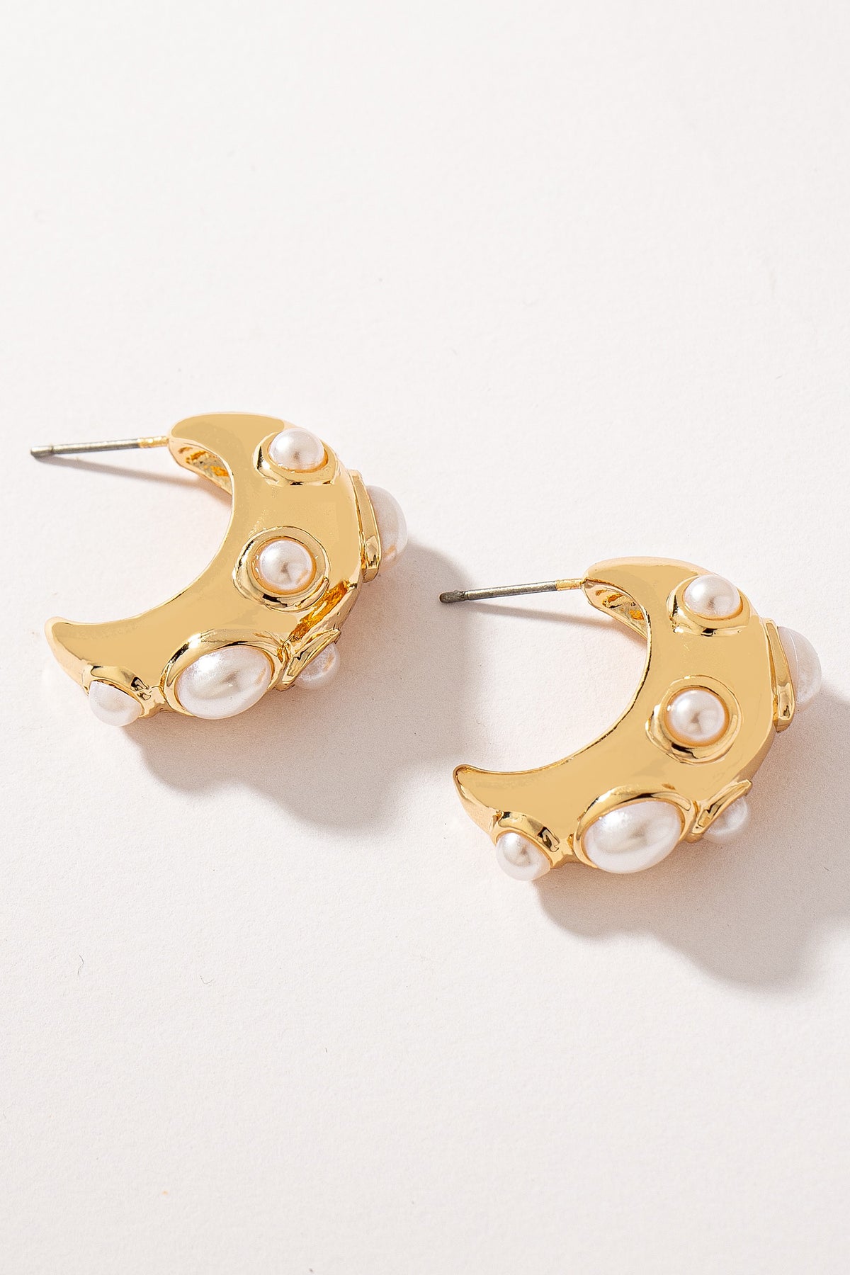 Crescent-shaped basket hoops adorned with pearl cabochons. Post-back.