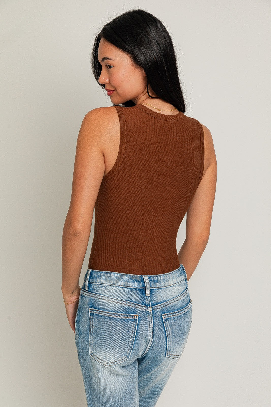 So simple and versatile. Our Simplest Bodysuit features a high neck, thin ribbing and thong bottom. Fitted. Styled with our Attractive Barrel Jean and Poetry Sneaker.