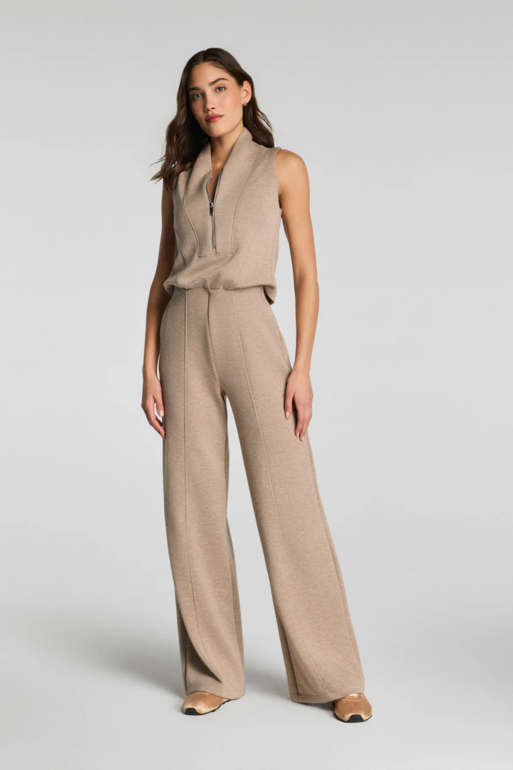 Our SPANX AirEssentials® Shawl Collar Half Zip Jumpsuit is crafted from SPANX signature spacer fabric that’s light-as-air, cloud-soft, and oh-so-smooth. This elevated essential features a sophisticated shawl collar with half-zip detail and a comfortable, relaxed fit. Sleek enough for travel or errands and cozy enough for lounging at home, this throw-on-and-go jumpsuit will take you anywhere and everywhere.