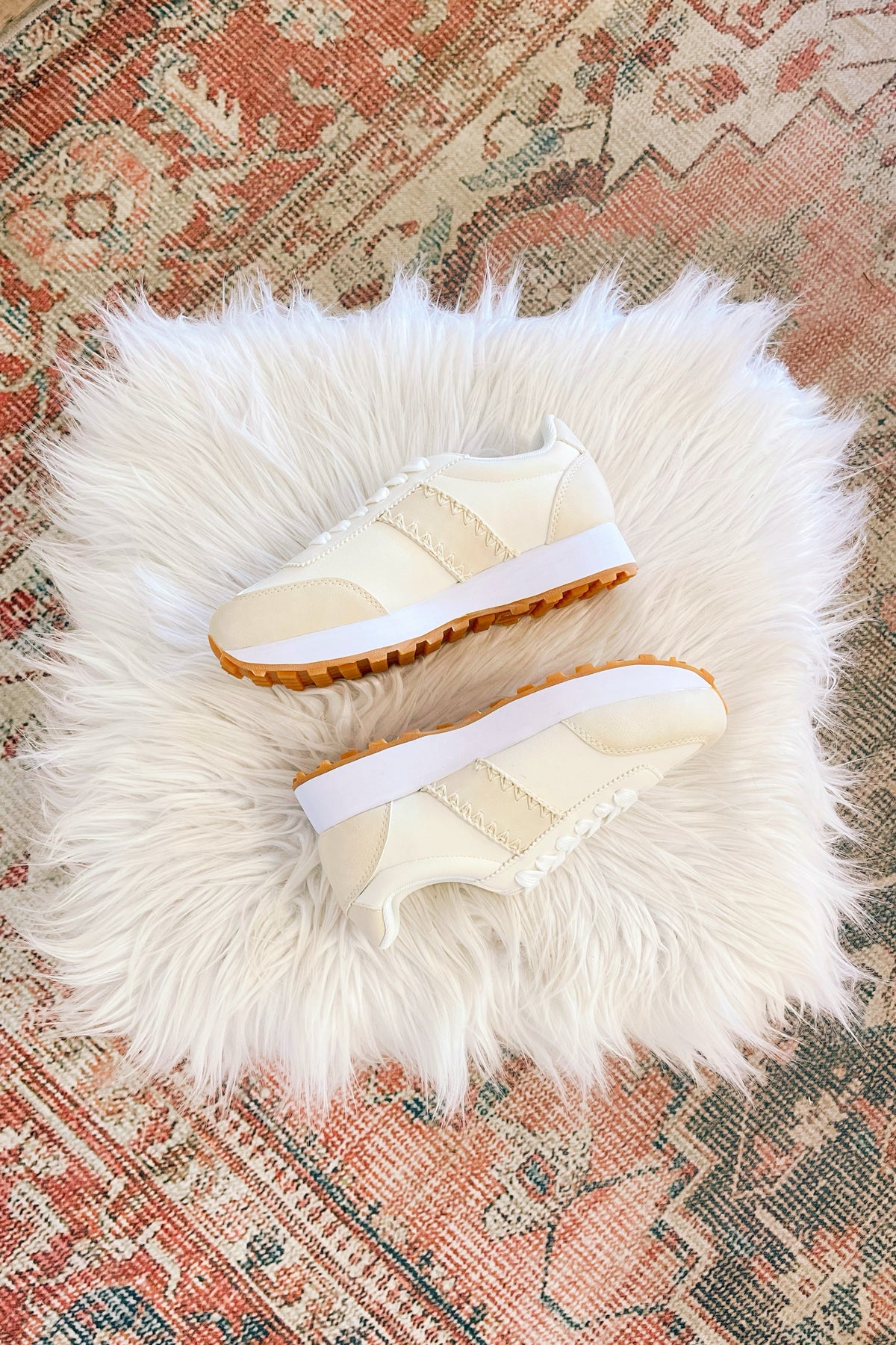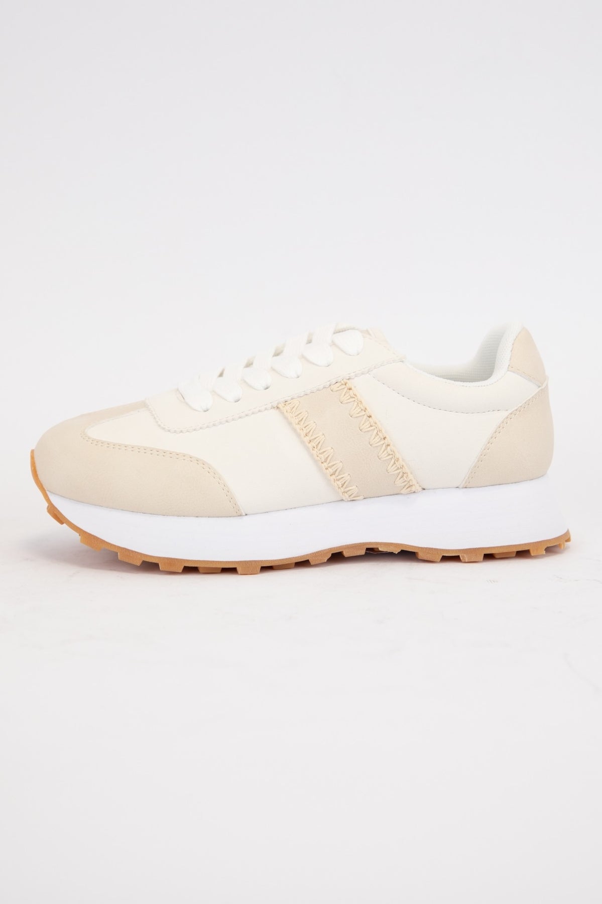 Perfectly neutral and so comfy, our Poetry Sneaker just sings! These feature blanket-stitched faux leather and suede details. Lace-up construction. Round toe. Lightweight.