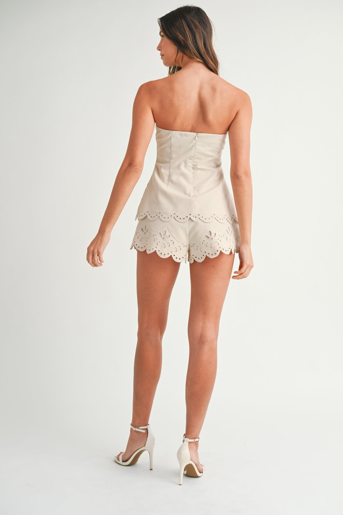 Embroidered linen-blend shorts with pretty cut-outs. Hidden side zipper. Pair with our matching Marianna Top (sold separately) for a chic summer set. Styled with our matching Marianna Top and Colmar Sandals.
